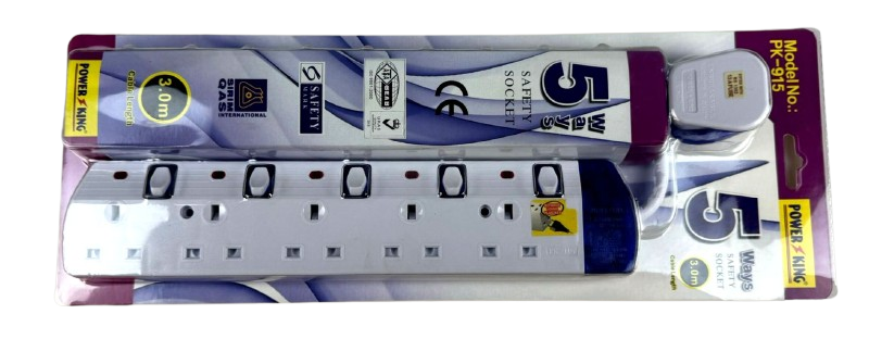 The Power King Safety Socket 5way 3m PK-915 is designed to meet your multi-device charging needs. With five outlets, it provides ample connectivity options for all your devices, making it perfect for both home and office use.Enhanced Safety Features