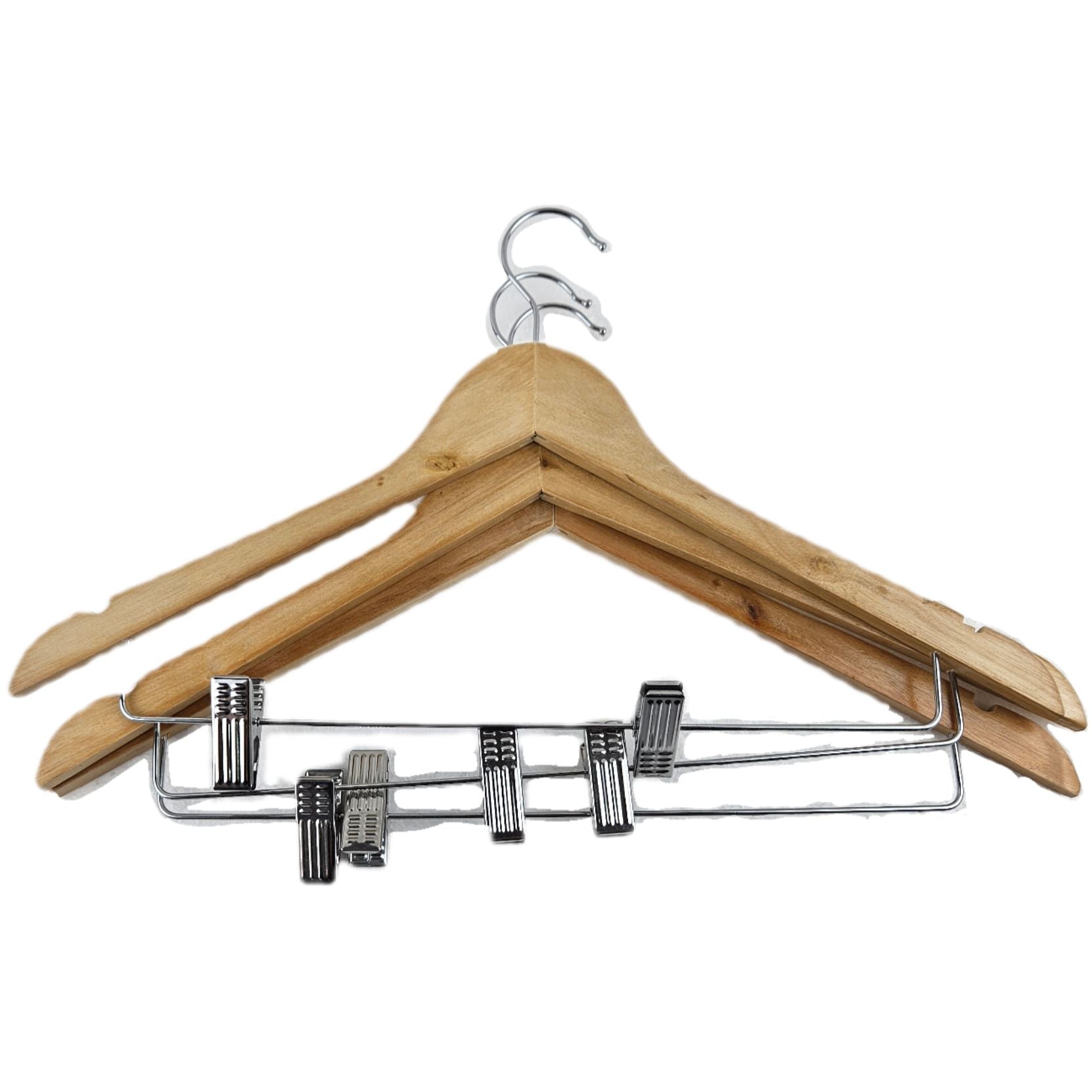 The Wooden Hanger with Clips is designed to simplify your closet organization, offering a perfect blend of style and functionality. Crafted from high-quality wood, these hangers not only add a touch of elegance to your storage but also provide practical solutions for hanging various garments. Say goodbye to wardrobe clutter and hello to an organized, tidy space!Features that Matter